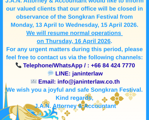 📢 Songkran Holiday Announcement J.A.N. Attorney &…